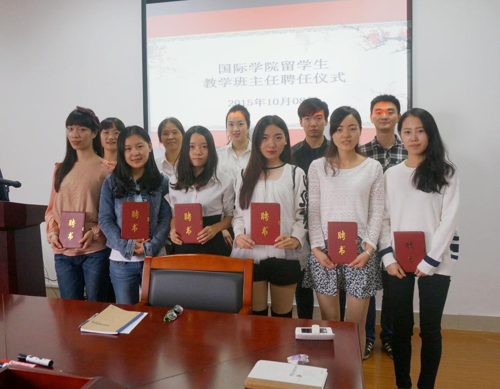 召开了留学生教学班主任聘任仪式,会议由黄小玲老师主持。黄老师首先对聘任的各位班主任表示了欢迎,并介绍了设立留学生班主任岗位的重要性,且希望各位班主任能够尽快熟悉学生和教学的情况,为辅助留学生日常教学管理、活跃留学生校园文化生活、丰富留学生教育资源以及增进中外学生的友谊和交流多做工作。