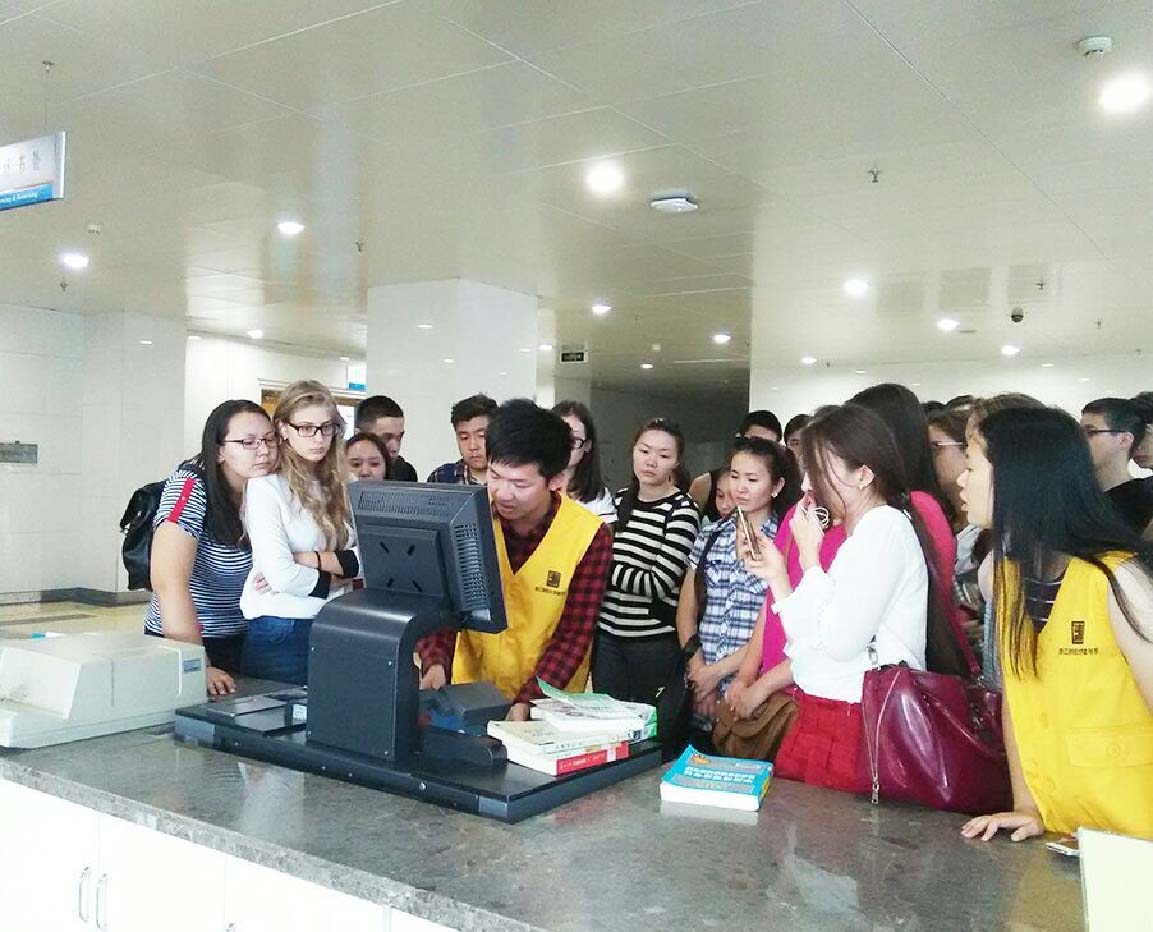 图书馆的活动。13:20,留学生在图书馆集合完毕后,在学生助理的带领下进入图书馆。随后,图书馆内的图书管理员带留学生参观图书馆,包括刷学生卡进入图书馆、图书馆借书流程、书目检索、图书馆打印机使用,以及每个楼层的功用等事项。在图书馆管理员和我院学生助理的共同讲解下,留学生掌握了图书馆使用方法。