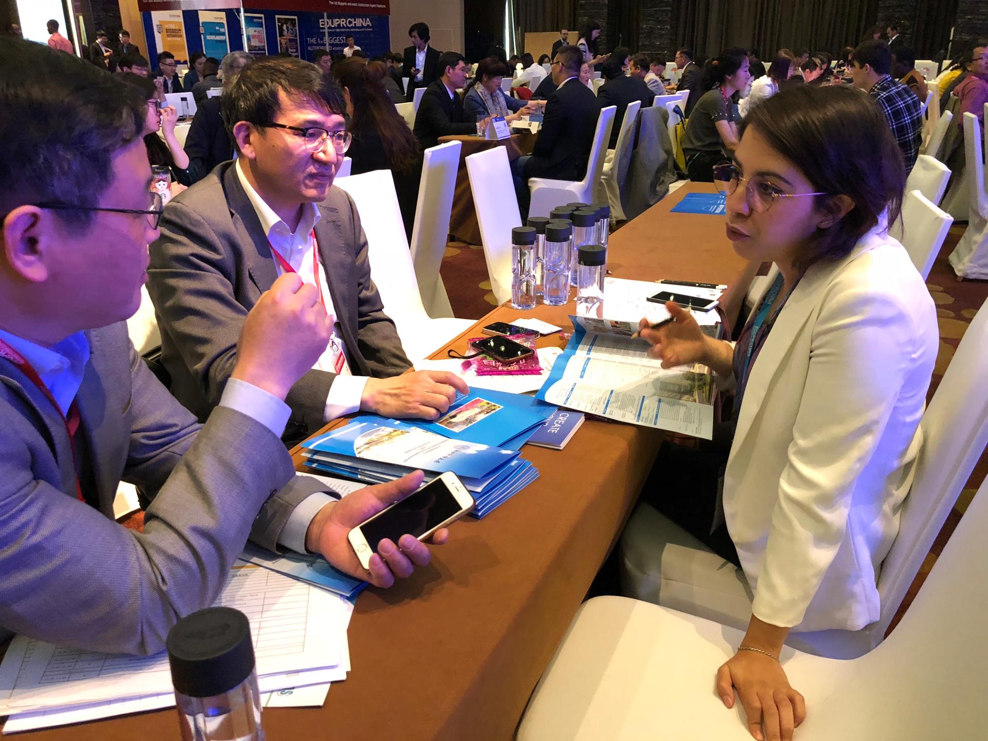 会议期间,我院教师与国际代理机构代表、海外院校代表进行了25场一对一的招生面谈,发放中文成人网