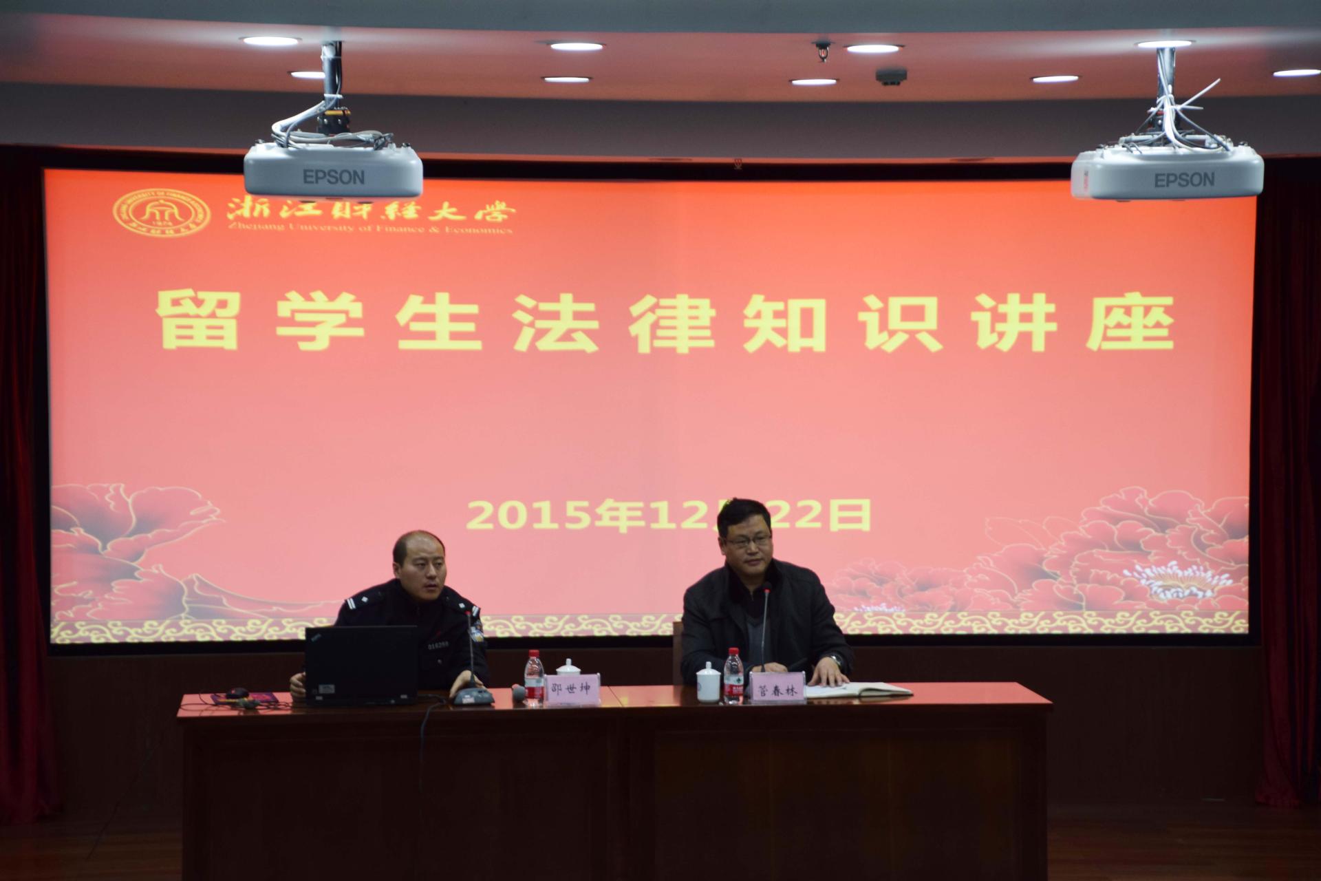 邀请杭州市经济技术开发区公安分局出入境管理科的邵世坤科长为全体留学生开展了一次法律法规讲座。