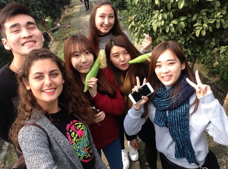 师生们兴致勃勃地来到了此行的第一站——杨家墩村,风景秀美的田野风光吸引了留学生们的目光,在当地农民的带领下,大家到田地里采摘了水果玉米与金桔,吃着自己亲手采摘的劳动成果口感特别香甜。