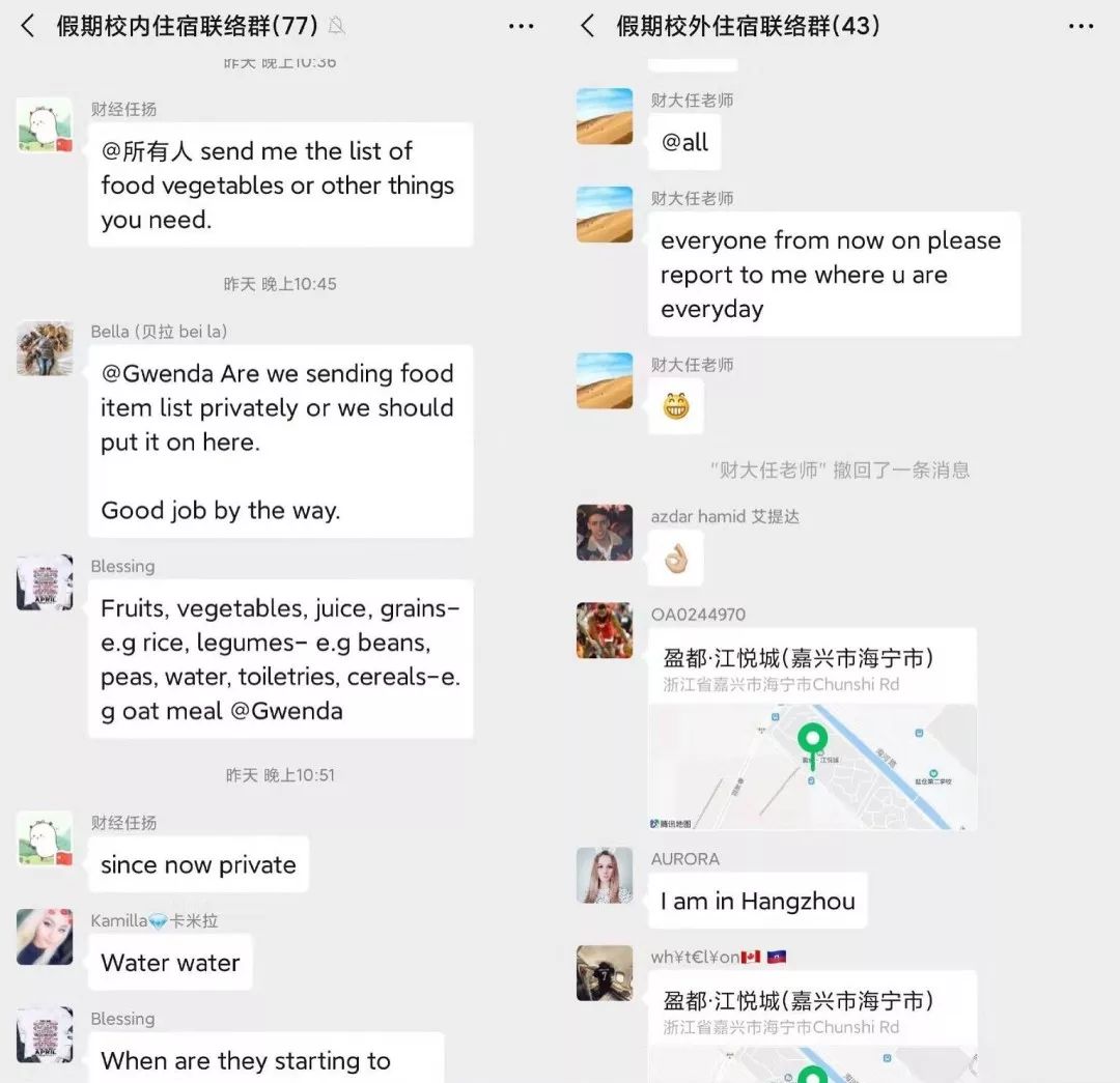 建立了留学生疫情防范联络群、假期在华留学生联络群、假期返校留学生留观群、身体不适留学生咨询与观察群等工作群,结合实际情况和防控需要,迅速开展留学生假期动向摸排工作,每天及时掌握留学生动态信息,并做好信息报送工作,及时处理好各类突发事件,落实落细各项防控措施,为打赢疫情防控阻击战作出应有的贡献。
