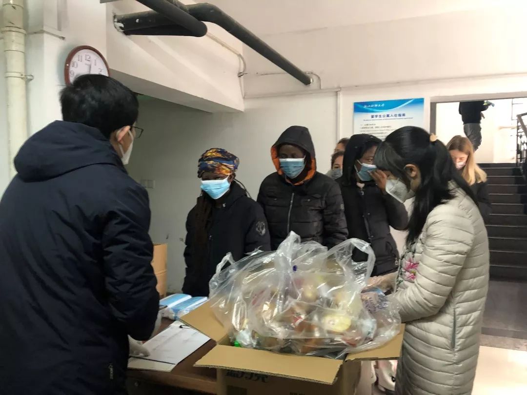 密切关注疫情变化,积极加强防控物资储备,分批次为留学生发放口罩和温度计。此外,还给留学生提供免费送餐服务,并每日免费提供一定的食品和基本生活物资。留学生们感受到学校的牵挂和关爱,都十分感动,异国他乡的冬天也很温暖。