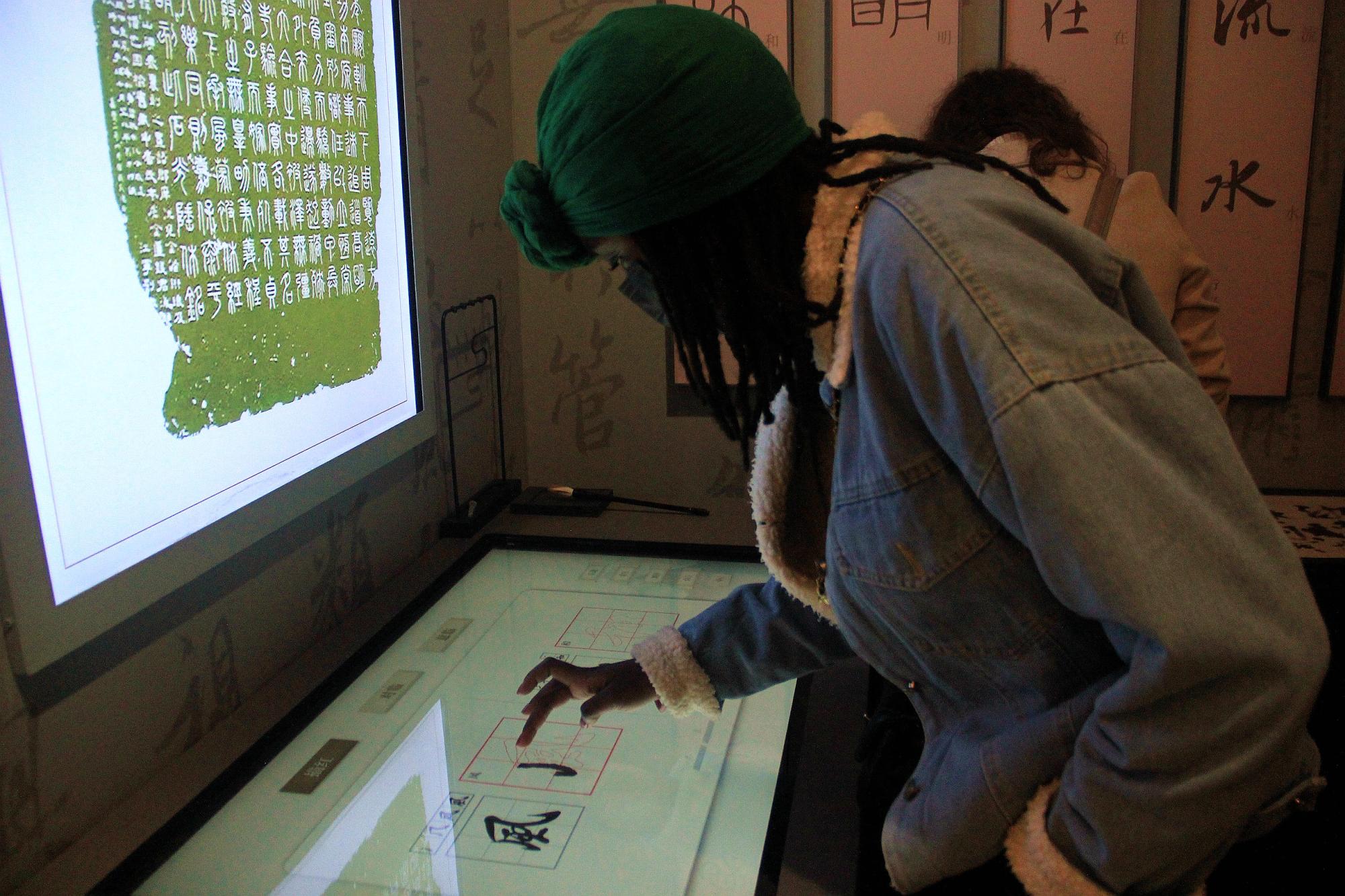 参观过程中,师生们惊喜地发现馆内运用了许多数字技术,增强了参观的体验感和新奇感。通过扫描二维码参与《百家姓》的互动,放飞姓氏孔明灯,查看姓氏来源;在大屏幕上完成经史子集的考题,搭建起古今互动的桥梁;通过科学技术收集人们心目中的未来版本。