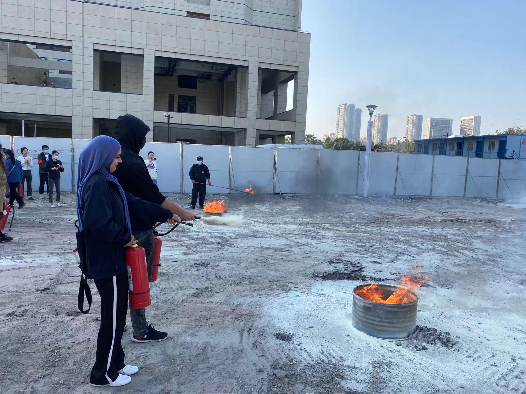 演练现场,消防员向在场国际学生进行了消防知识培训,详细讲解了如何预防火灾发生、发生火情时应急疏散的注意事项以及灭火器的使用方法等消防安全知识,同时现场演示了灭火器的正确使用方法。随后,在场留学生们轮流使用灭火器对火源进行扑救,在培训和实操中,进一步强化了安全意识、普及了消防知识,也检验了大家的疏散能力和应急自救能力。