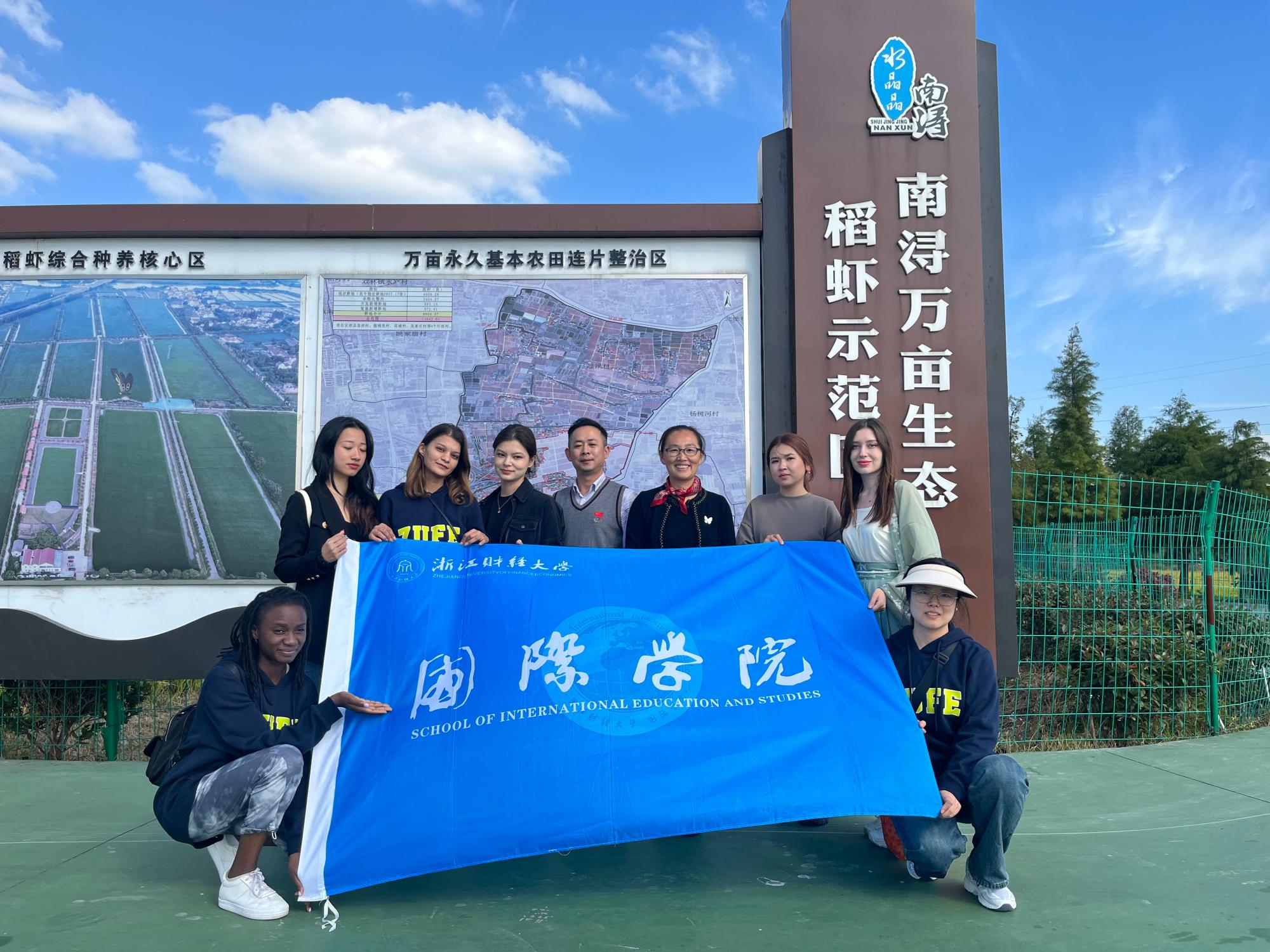 下午,同学们游览了位于双林镇箍桶兜村的南浔万亩生态稻虾示范区,箍桶兜村乘着农文旅融合发展的东风,走出了一条发展的新路线,鼓起了村民的“钱袋子”。在村委会主任的带领下,师生们了解了箍桶兜村的高标准农田建设、特色“稻虾”轮种模式以及当地的旅游新亮点。来自津巴布韦的留学生MAMOMBE MWAYI TUNGAMIRAI说:“我是被中国先进的基础建设力量吸引来读书的。这次乡村行,我发现了农业+旅游的融合发展,我想把这些振兴乡村的经验带回津巴布韦。”