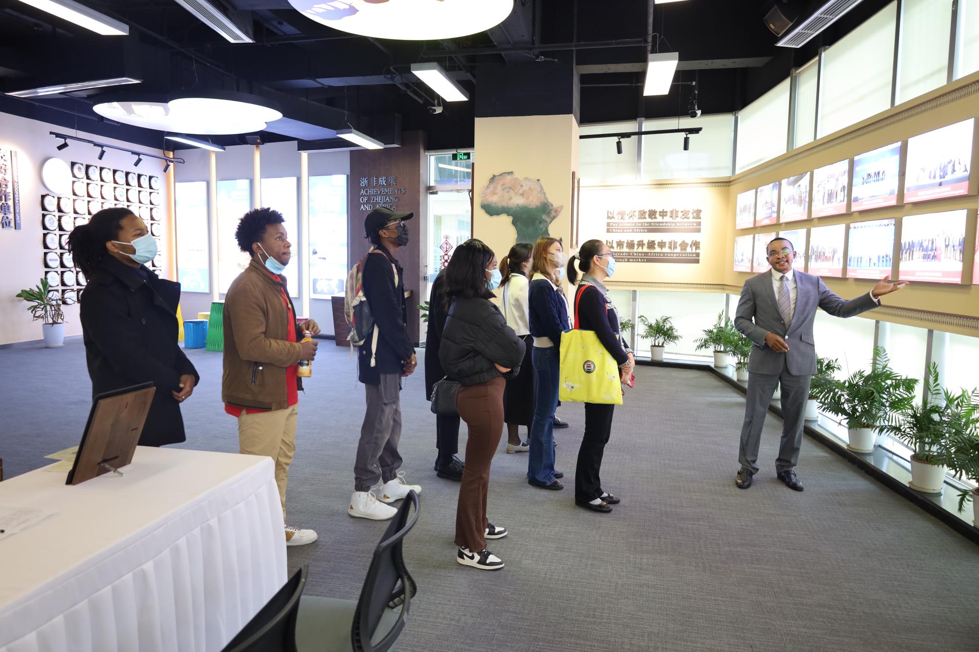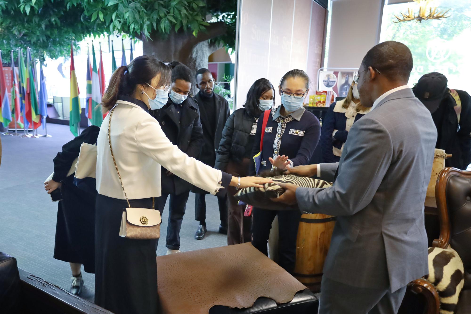 在相关负责人的带领下,大家首先了解了中心的发展概况,并参观了中心的展厅。展厅内非洲特色手绘布、非洲特色木雕、非洲艺术文化瑰宝祖鲁篮子等精湛的工艺品,让大家近距离感受了非洲文化的魅力。