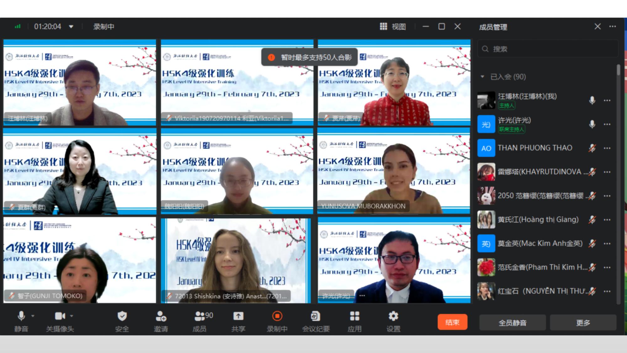 承办的“汉语桥·HSK4级强化训练”线上冬令营经过十天密集的营日活动,于2023年2月7日顺利结营。