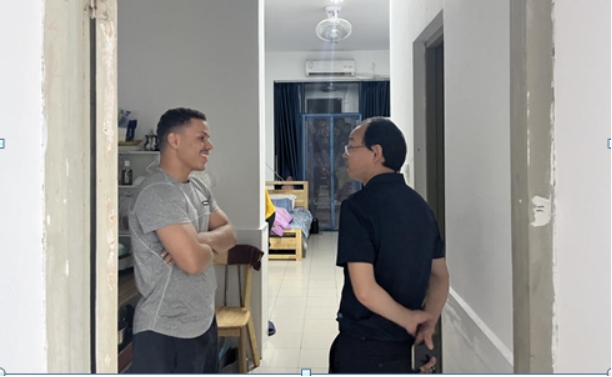 院长柴志贤、副院长赵倩、保卫处、紫元置业有限公司相关负责人,全体留学生辅导员参与检查。