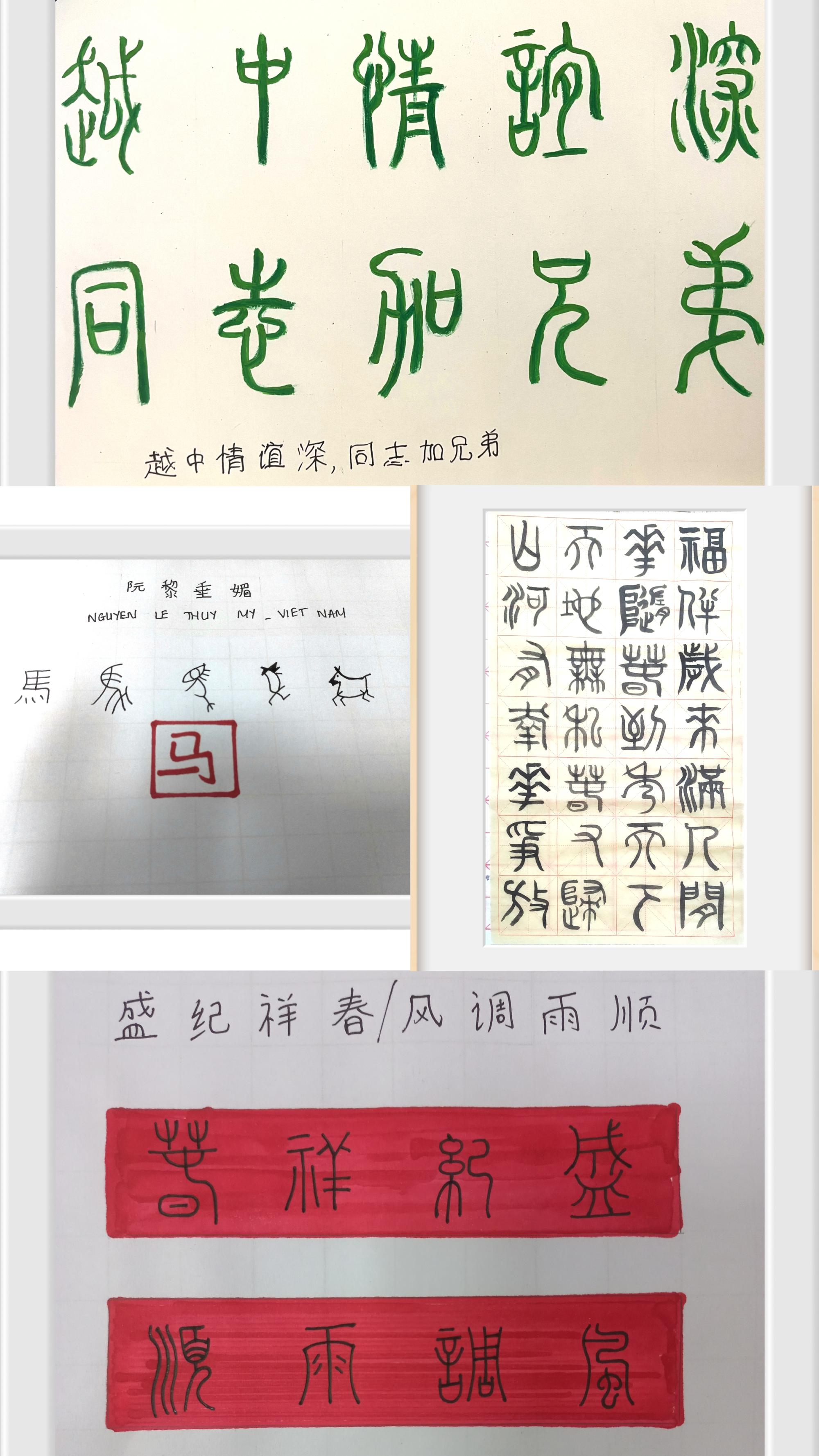承办的“汉语桥·HSK4级强化训练”线上冬令营经过10天高强度的集训,于2024年1月22日顺利结营。本次冬令营共吸引了俄罗斯、越南、日本、印尼等12个国家和地区的1500名学员注册,为保证教学质量我们邀请了200名学员参加直播授课。学员对本项目的实施以及任课教师的辛苦付出感恩满满,有越南学生在作业中用小篆写了“越中情谊深,同志加兄弟”的字幅,以表达对“汉语桥”冬令营项目的感激之情和对老师们的深情厚意,老师们也勉励学员们继续努力学习汉语。有学员表示将来一定选择美丽的中国、美丽的杭州—中文成人网