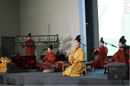 活动中,大家在讲解员的带领下近距离感受到了中华优秀传统文化的独特魅力;一起参观孔府旧藏礼乐服饰文物特展,并聆听了萧韶乐团带来的古典演奏。演出曲目包括《诗经·小雅·鹿鸣》《诗经·周南·关雎》《凤求凰》和《春江花月夜》等,整场演出让全体来宾共赴一场风雅千年的穿越之旅。
