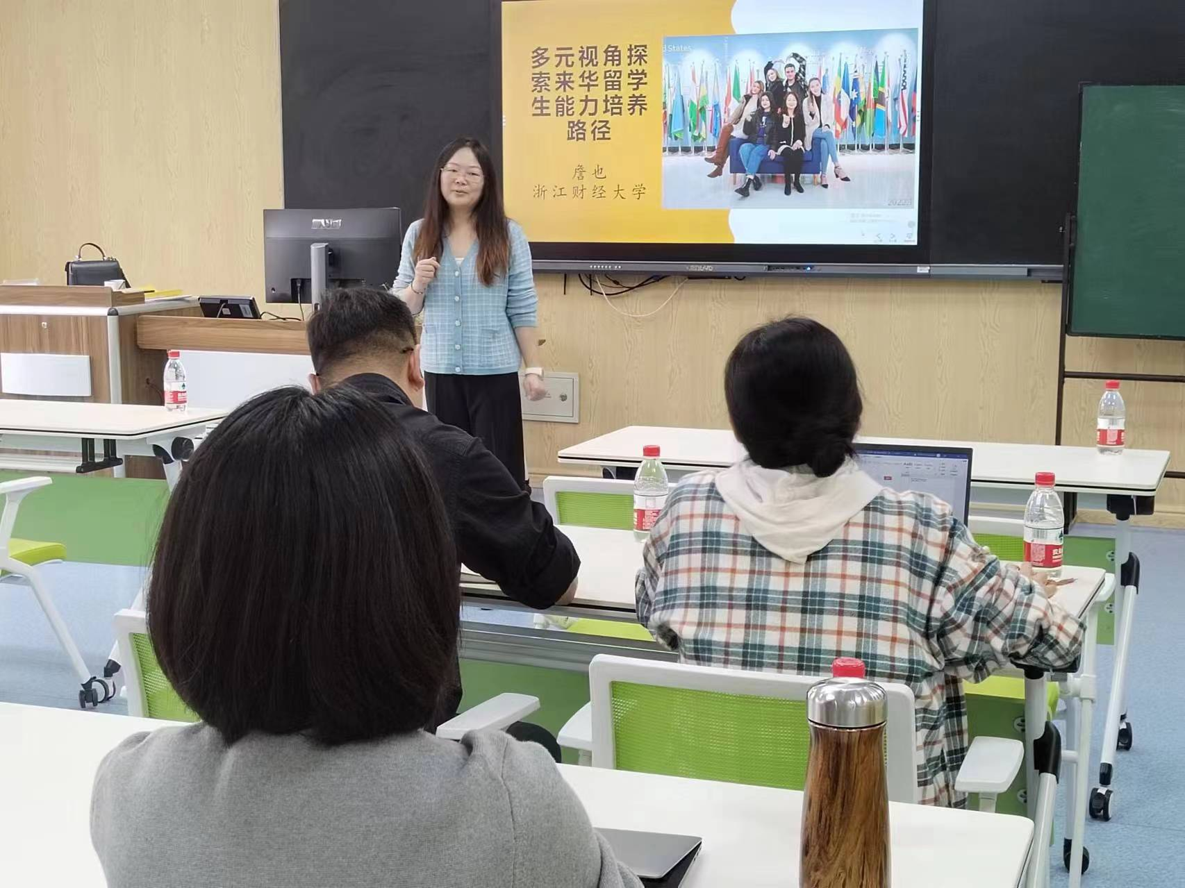 陈颖作了《向留学生讲好中国故事的营销方略》的专题讲座,以课程Marketing为例,分享了讲好中国企业营销故事的授课经验,为国情教育与专业课堂相融合提供了新思路。她认为要更多关注留学生课堂需求,以激发学生上课兴趣,培养既了解中国国情,又熟练各国语言的营销人才。