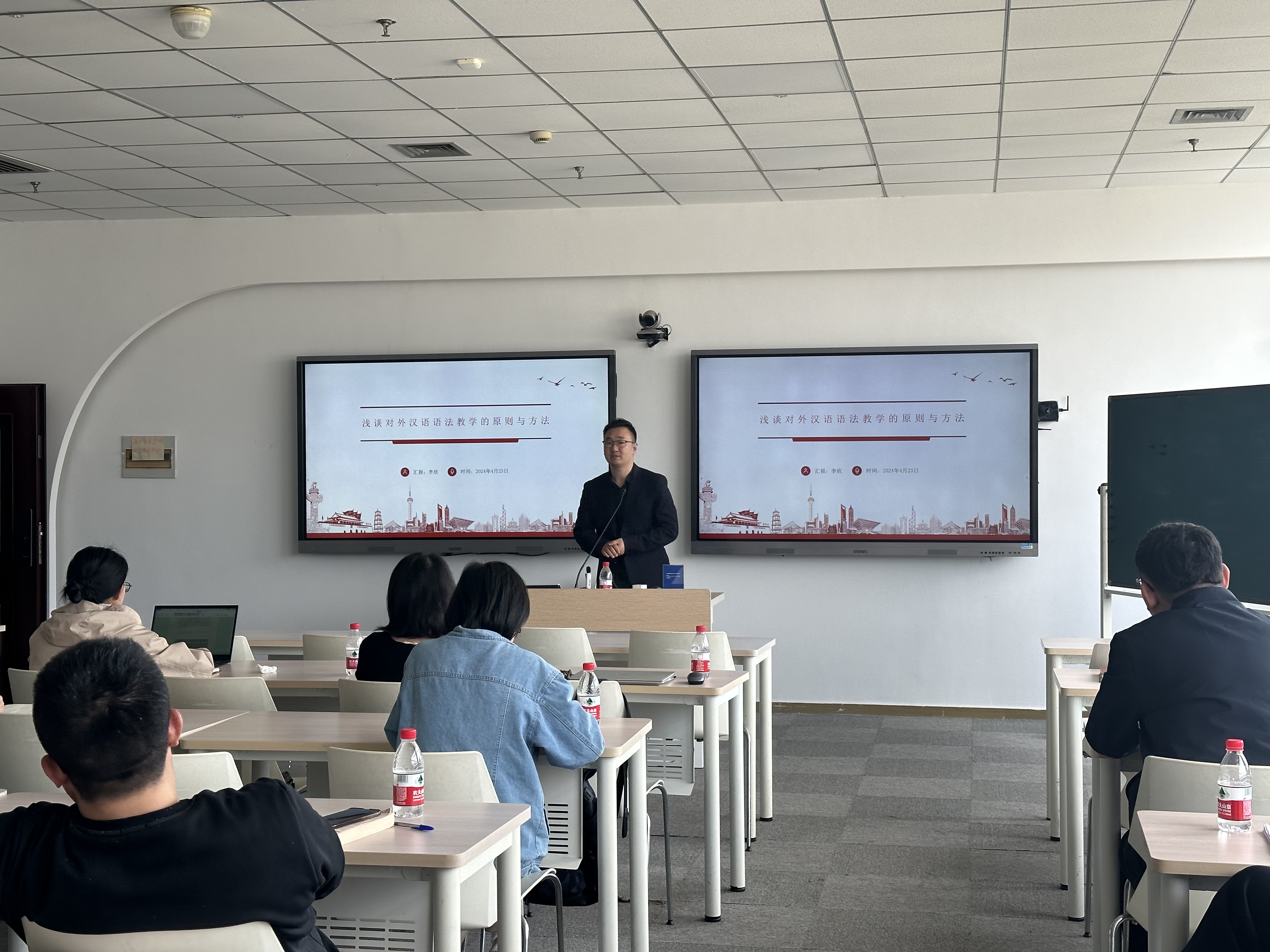 李欣分享了《浅谈对外汉语教学的原则和方法》专题讲座,从汉语语法的特点出发,分析了留学生汉语教学中存在的困难与偏误,并分享了汉语学习中不同阶段所使用到的三种方法,他指出要从日常生活用语入手,加强学生对汉语语境的理解,从而减少学生对汉语语法上的理解偏差。