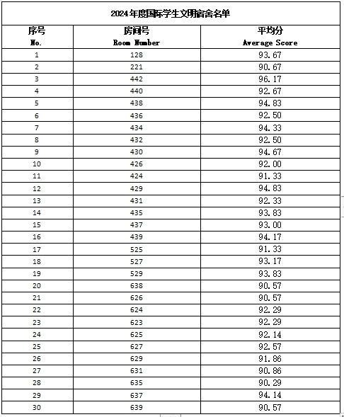 文明宿舍30间(具体名单详见附件)。