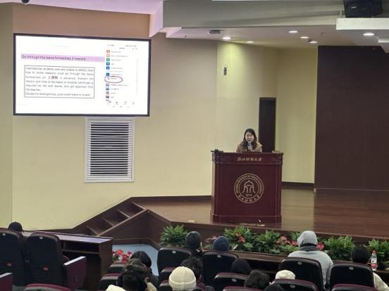 会议伊始,辅导员陈思涵针对假期安排及新学期报到进行了详细说明,重点解读了假期签证办理、非法就业等注意事项,郑重告知所有留学生务必严格遵守法律法规,坚决杜绝非法居留与非法打工行为。随后,教学主管陈勃静老师围绕课堂考勤与期末考试展开讲解。再次明确了请假流程及考勤细则,并着重强调了考场纪律的严肃性,严禁任何形式的违规舞弊行为。