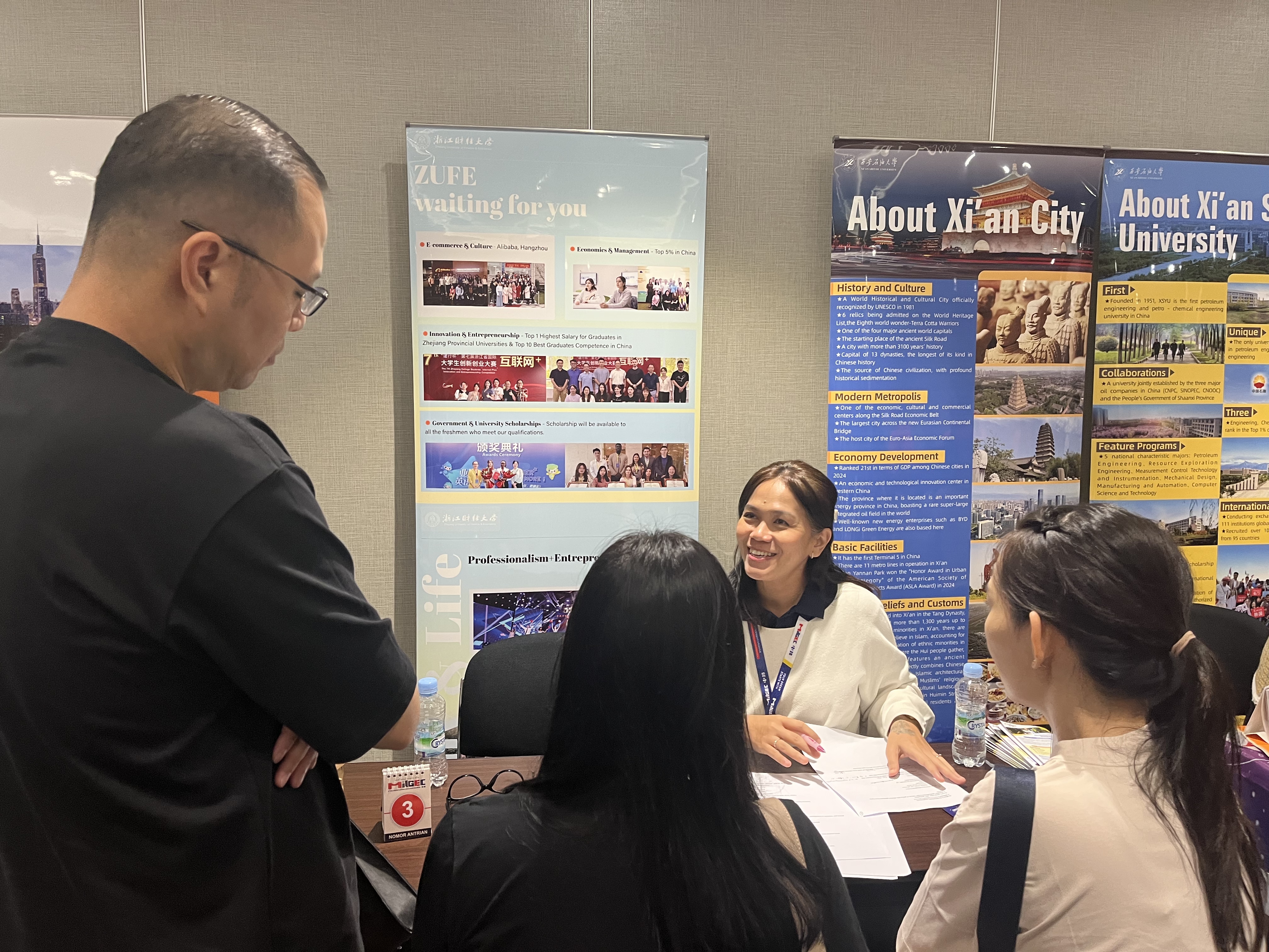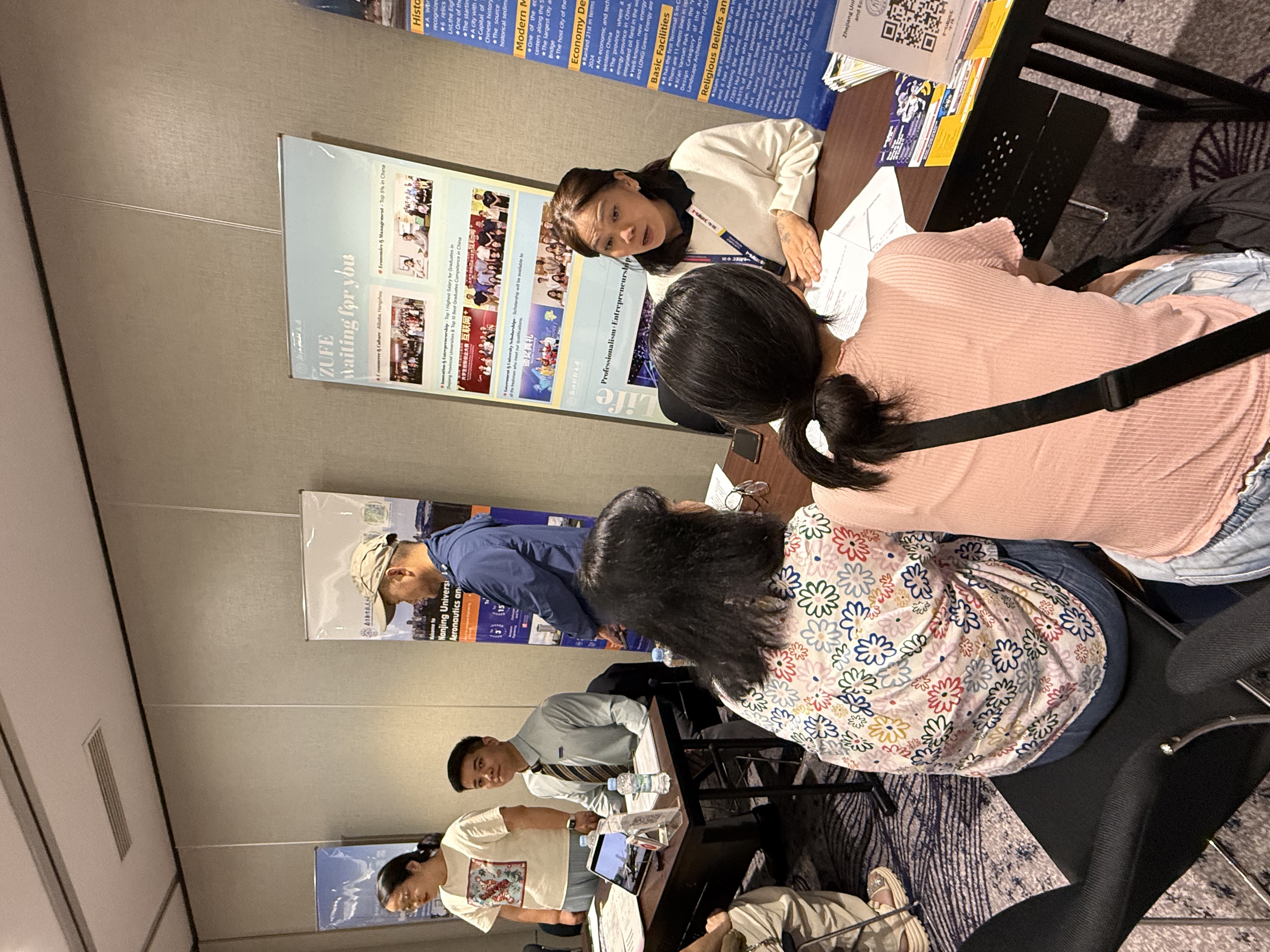 展台咨询的学生络绎不绝。我院委托青岛中邦公司的专业服务团队,重点推介了学校国际经济与贸易、电子商务、商务汉语、会计学等优势学科专业,并详细解读了本科、硕士项目的招生政策、奖学金计划等。展台还通过虚拟校园导览、校友分享视频等形式,生动展示了浙财的教学环境与国际化氛围。