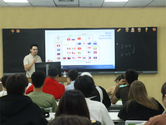 2018届国际经济与贸易专业本科毕业生,目前任协力管理咨询公司(Dezan Shira & Associates)东盟总监一职。讲座上黎勇以详实的数据和生动的案例,深入分析了东盟与中国经贸合作的最新趋势以及中国企业在东盟的投资动态等内容。讲座结束后,黎勇与在场师生进行了互动交流,耐心解答了关于区域经济合作、投资机遇等热点问题。他深情回顾了在母校的学习经历,并感恩母校和师友长期以来对他职业发展的支持。