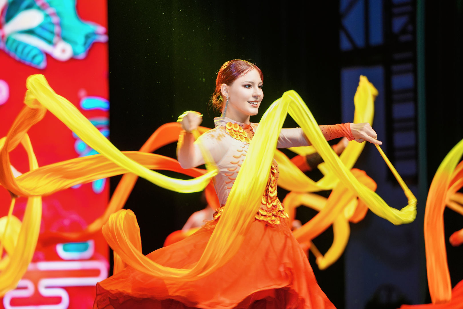 随后俄罗斯、乌兹别克斯坦、摩洛哥等国家留学生组成的舞蹈串烧《舞韵・美美与共》融合多国、多民族风情,用灵动舞姿编织世界文化经纬,传递开放包容。