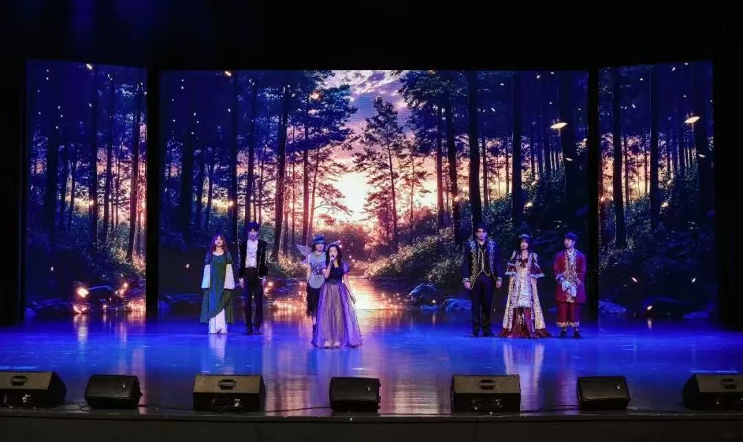 留学生参演的话剧《仲夏夜之梦》用浪漫剧情演绎青春幻境,月光下的独白与裙摆旋转的光影,将少年心事酿成诗行。留学生Adeliya献唱《光年之外》,用歌声跨越时空,让心灵相通。