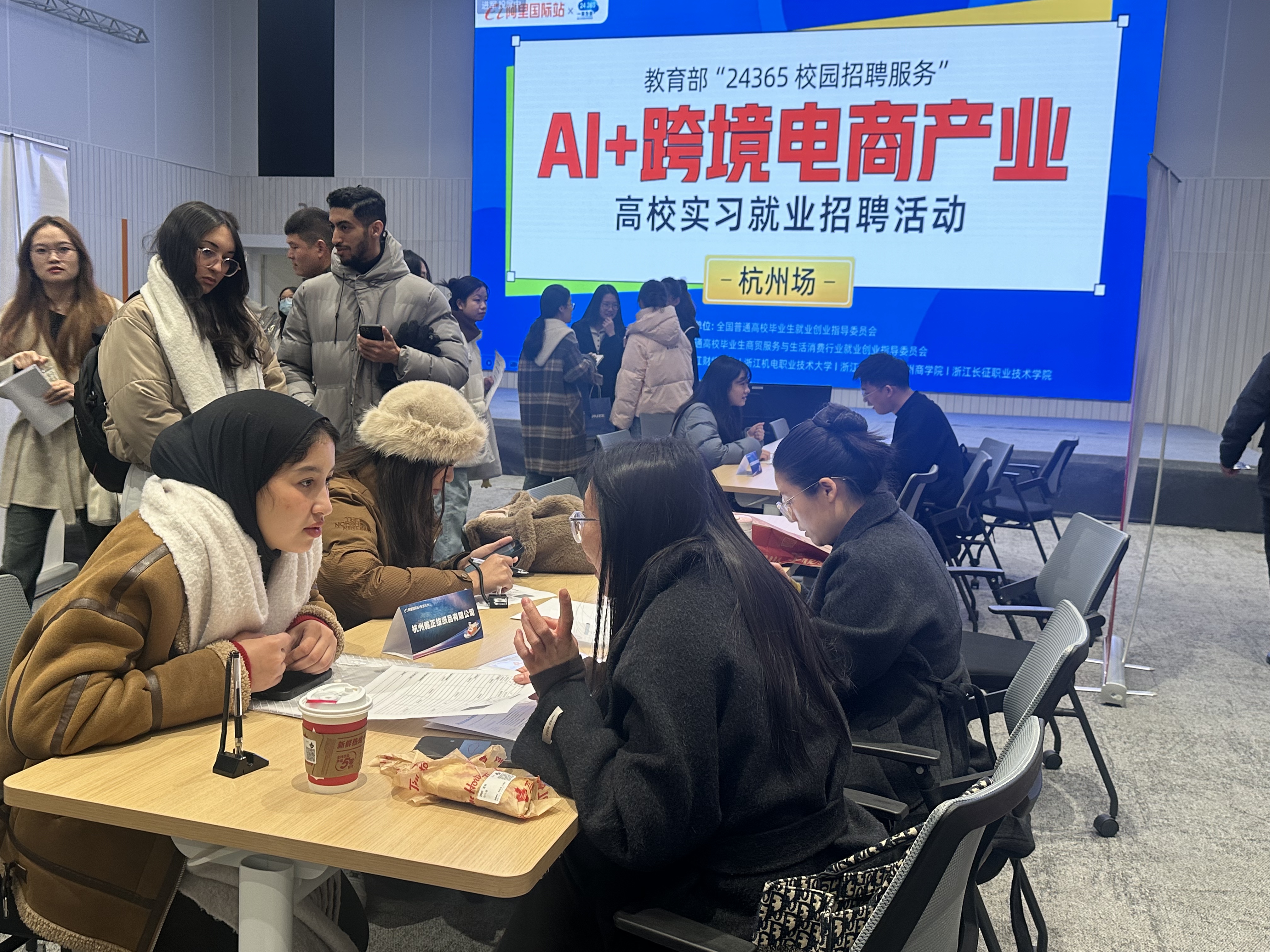 人才培养理念的有力诠释。留学生也表示通过此次活动,他们不仅深入了解了AI技术在跨境电商领域的前沿应用,还与行业内的专业人士进行了面对面的交流,极大地拓宽了自己的视野。招聘会现场,还有不少留学生与企业当场签订了实习协议。