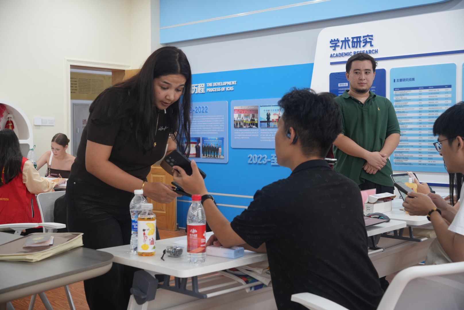 为帮助国际新生更快适应新环境,现场不仅提供了多语种入学指南和手册,还安排了很多身穿红马甲的“国际志愿者”,他们主动上前协助搬运、指引动线、答疑解惑。尽管汗水浸湿衣衫,他们的笑容依然明亮——用实际行动传递着真正的“浙财温度”。