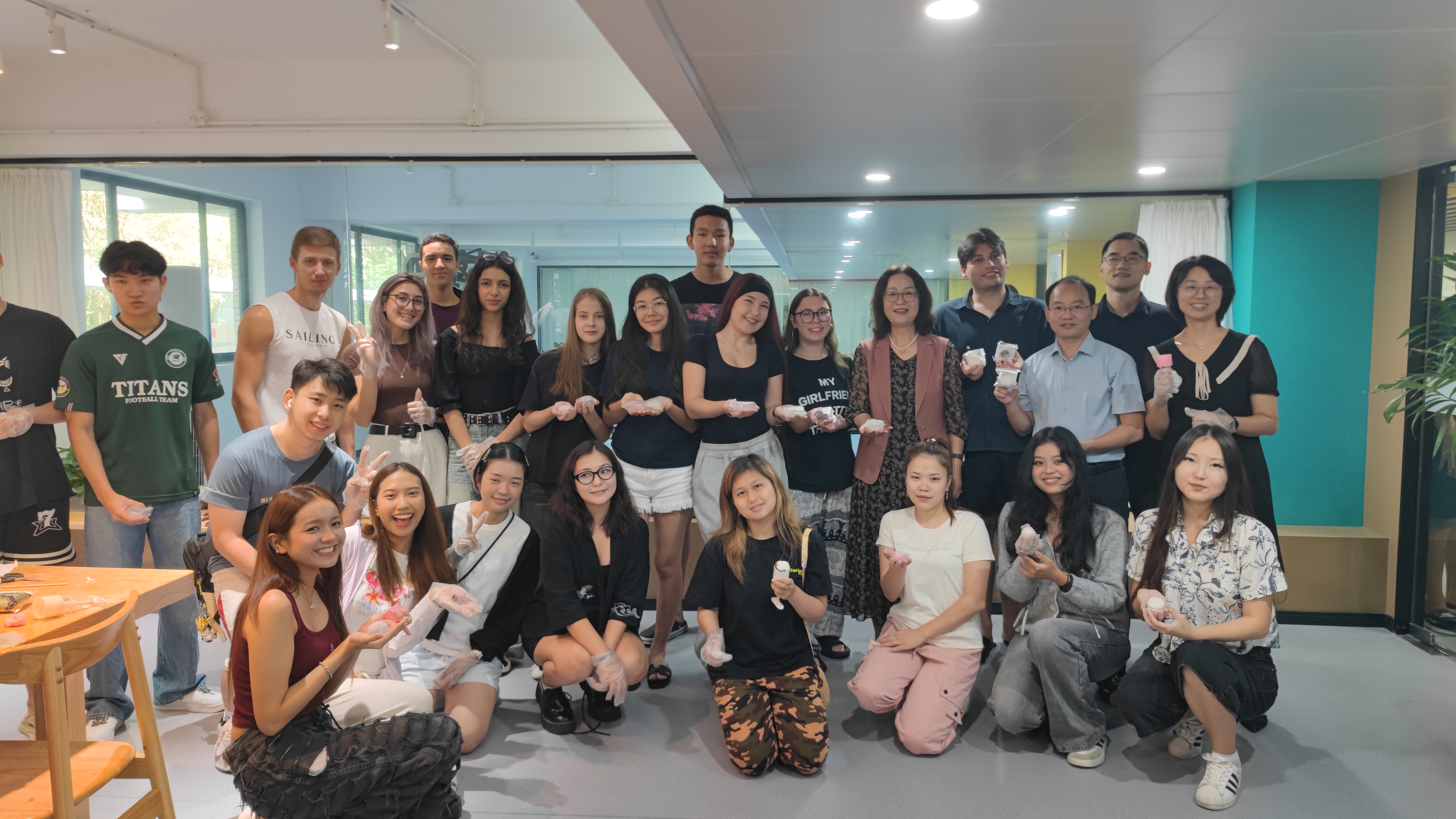 在老师们的耐心指导下,留学生们兴致勃勃地投入到冰皮月饼的制作中。从揉制饼皮、称量馅料,到压模成型,每一个步骤都充满了新奇与乐趣。当一个个印有精美图案、晶莹剔透的冰皮月饼在自己手中诞生时,留学生们脸上无不洋溢着自豪与喜悦的笑容。