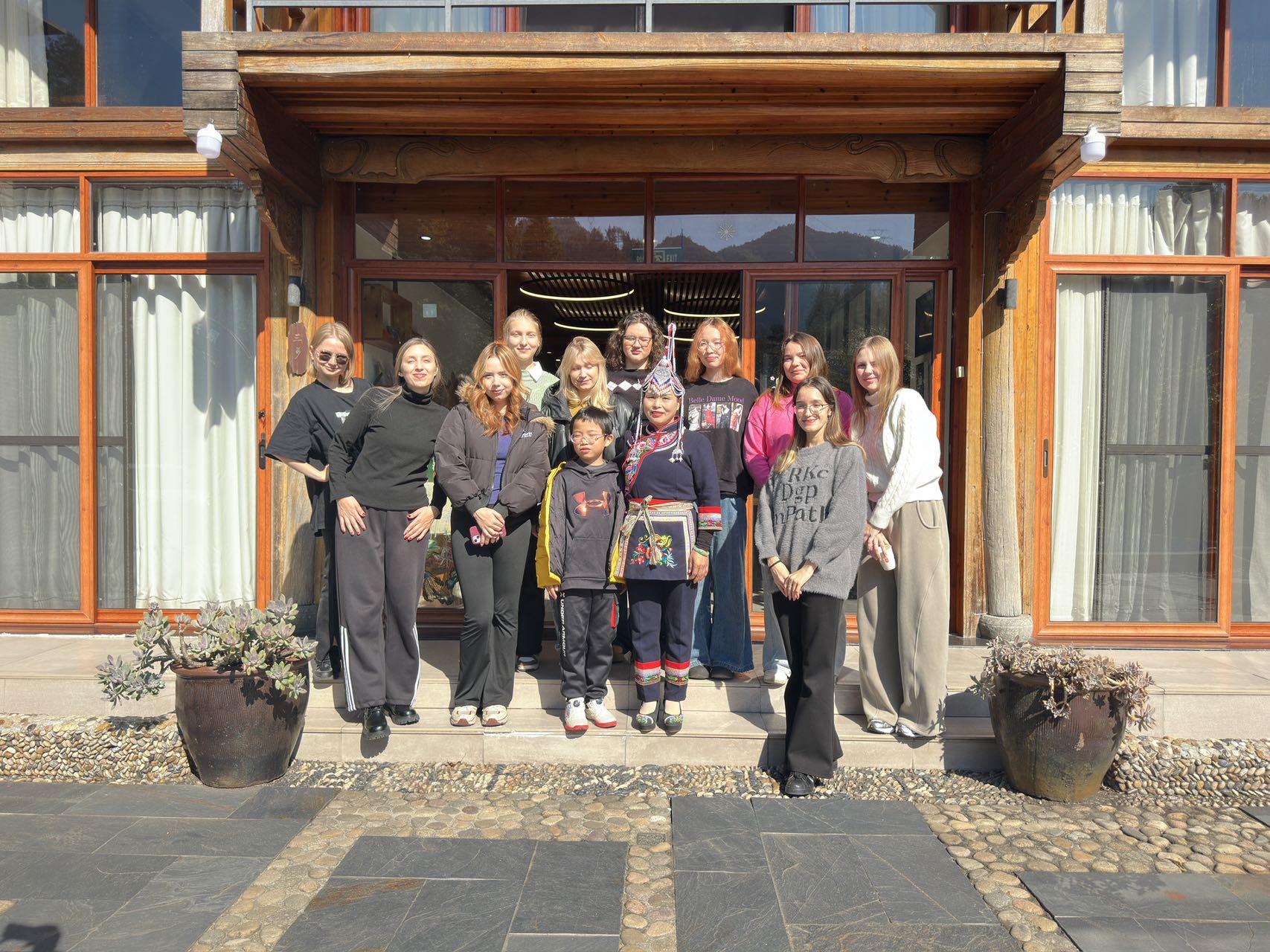 此次活动的压轴环节是试穿精美的畲族传统服饰。留学生们对色彩鲜艳、绣工精巧的凤凰装表现出极大的兴趣。在畲族居民的帮助下,大家纷纷换上畲装,戴上精美的头饰,瞬间化身为“畲家儿女”。她们身着盛装,漫步在古色古香的街巷中,用相机定格下这跨越文化的美丽瞬间。