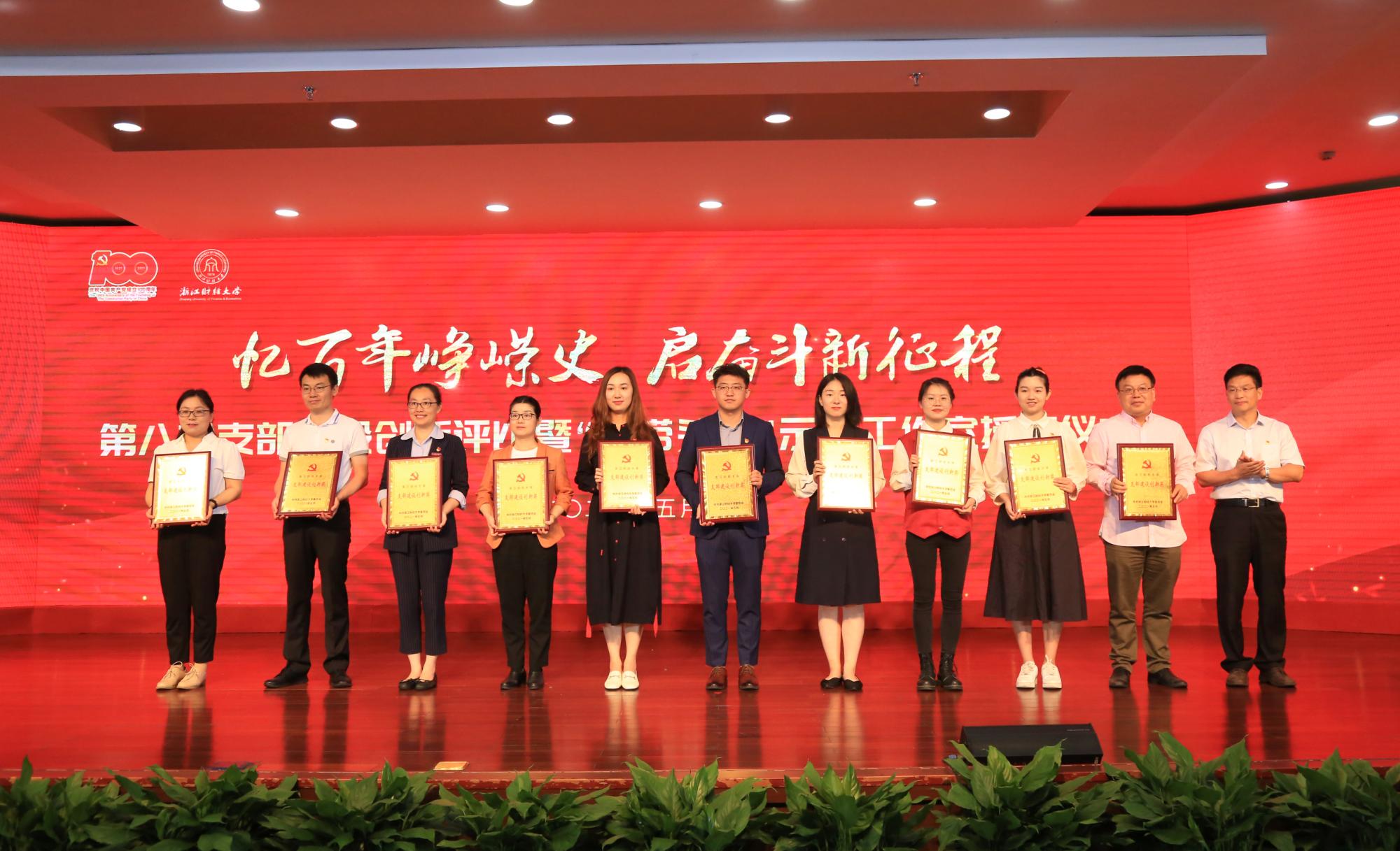 第八轮支部建设创新评比暨第二批“双带头人”教师党支部书记示范工作室授牌仪式。校领导黄建新、董进才、申屠莉和楼胆群以及党群部门负责人,各二级党组织书记、副书记,全体组织员、党支部书记,师生党员代表等600余人参加大会。