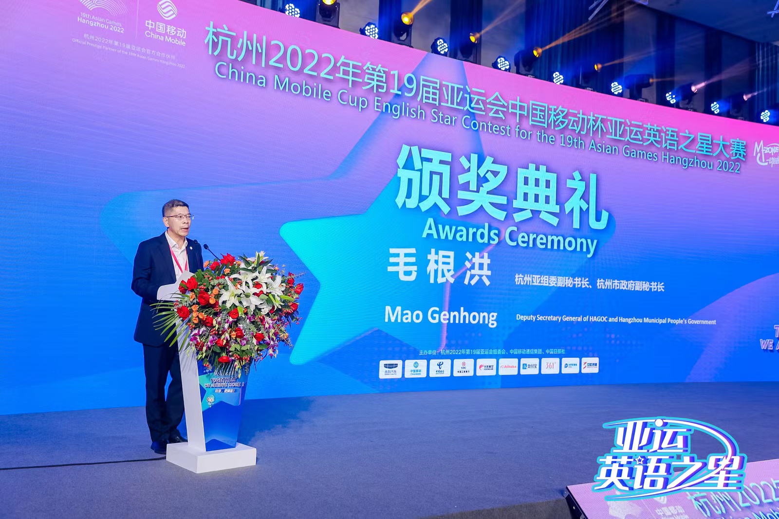 亚组委副秘书长、杭州市政府副秘书长毛根洪在致辞中表示:“亚运会不仅是一场体育盛会,也将是一场文化交流的盛会。杭州亚运会也将成为向世界讲述中国故事,展示浙江风采和杭州国际化形象的重要窗口。”同时,也期待“中国移动杯亚运英语之星”大赛的选手们积极发挥语言优势,大力弘扬奥林匹克精神,讲好杭州亚运故事,为筹办一届具有“中国特色、浙江风采、杭州韵味、精彩纷呈”的杭州亚运盛会贡献智慧和力量。