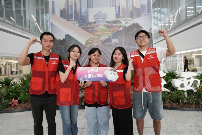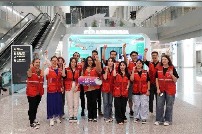最后,留学生们参加了杭州西站亚运服务保障志愿活动,来自不同国家的留学生用不同语言为杭州亚运送上祝福,为亚运健儿加油助威。