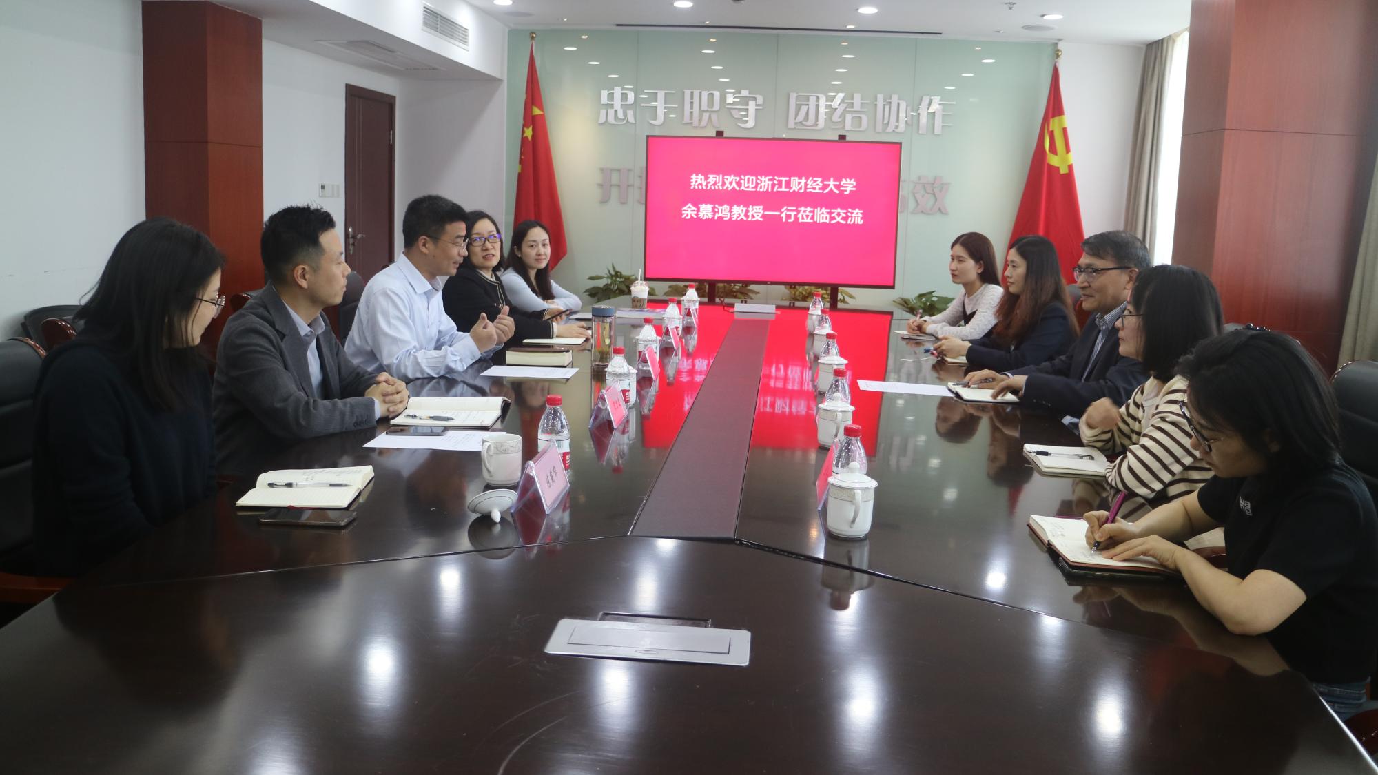 交流伊始,周建华主任首先对余教授一行的到来表示欢迎。随后,他简要介绍了浙江省投资促进中心的创建背景、使命任务、发展历程以及亟待开拓创新的专业领域,并愿意通过双方的交流合作,共建科研平台,打造有利于“一带一路”建设、推进我省“地瓜经济”发展的营商环境和投资工作评价体系。